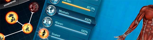 Bio Inc ist eine App, die kostenlos für Android und kostenpflichtig im iTunes App Store heruntergeladen werden kann. In Bio Inc müsst ihr die Systeme eines Patienten ausschalten. Auf Basis dessen Risikofaktoren gilt es Krankheiten einzusetzen, die dessen Systeme ausschalten.