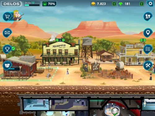 In der Westworld App werden die Münzen bereits nach kurzer Zeit Mangelware sein, denn alles kostet Münzen, aber du selber nimmst nicht sehr viel ein. Allerdings stehen dir gleich zu Beginn enorm viele Edelsteine zur Verfügung. Tippe oben bei den Münzen auf das “+”. Hier bekommst du 10.000 Münzen für 50 Edelsteine. Eine lohnenswerte Investition für den Anfang, um schneller voranzukommen. Da es in Westworld immer wieder Edelsteine gibt, musst du dafür auch kein Echtgeld ausgeben.